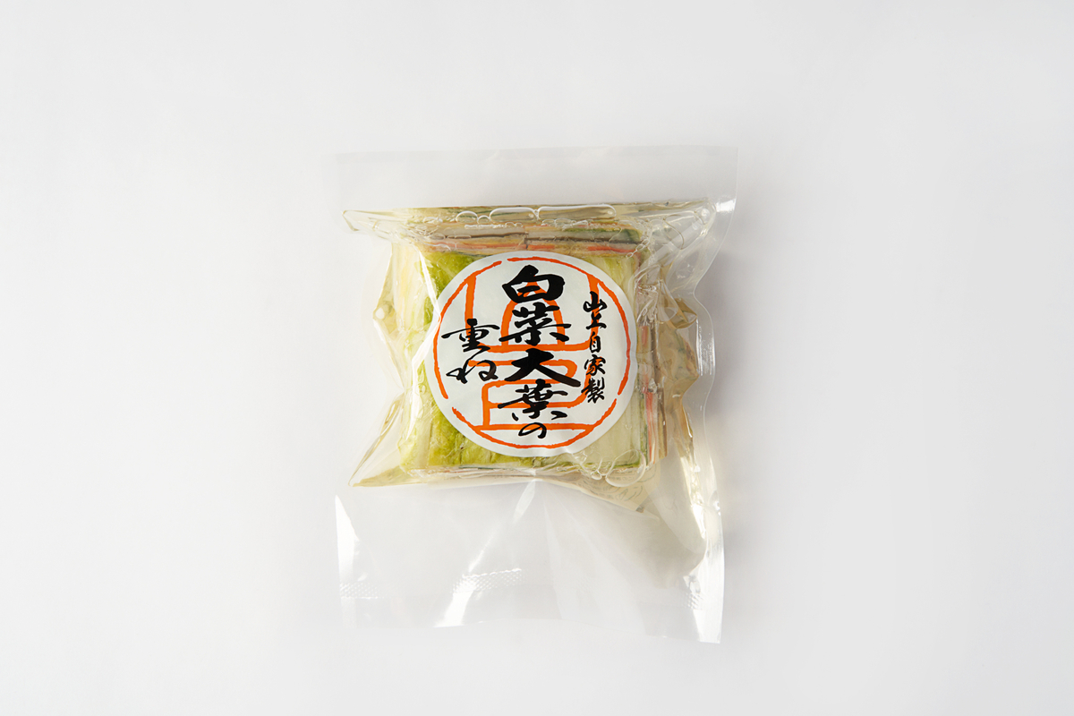 白菜に大葉・大根・昆布・ニンジンを幾層にも重ね、しっかりと漬け上げました。大葉の爽やかな香りがアクセントとなり、様々な野菜の食感をお楽しみいただけます。
